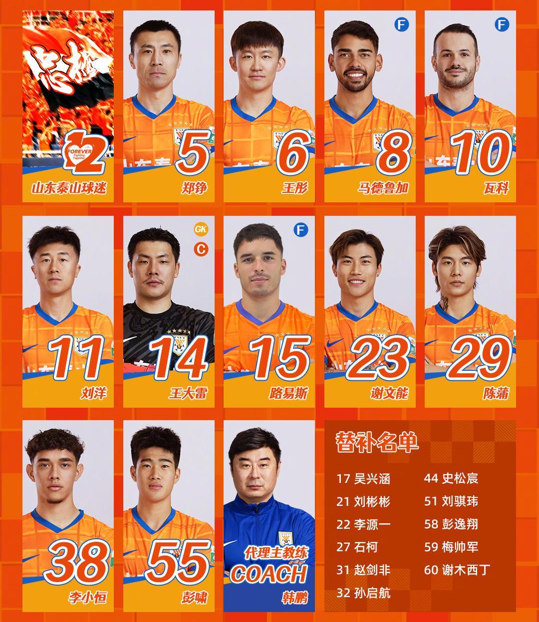 开云体育入口-山东泰山客战申花,韩鹏调整6名首发,李小恒与陈蒲搭档锋线