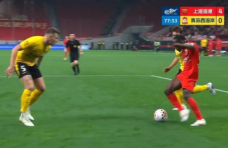 第80分钟,戴维森左路牛尾巴过人,随后外脚背挑传中路,梅米中路包抄头球破门,西海岸扳回一城,1-4!这个配合和进球太精彩了。随后海港换人,李新翔上场,换下安佩姆。
